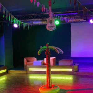 Uma noite iluminada, com túnel de LEDs, glowstation e acessórios a brilhar no escuro, iluminação móvel, pista de dança, luzes ao ritmo da música e um pouco de fumo ou fogo-frio para levar a festa a outro nível.